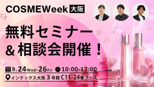 9月24日(水)〜9月26日(金)にインテックス大阪で開催される「COSME Week」に出展いたします。「今さら聞けない基礎的なこと」から、「出店検討時の具体的な悩み」まで、 現場経験豊富なスタッフと直接お話しいただけるチャンスです。